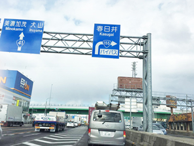 国道41号線「村中」の交差点を155号線「春日井方面」に名古屋、岩倉方面からは右折、一宮方面からは左折します。