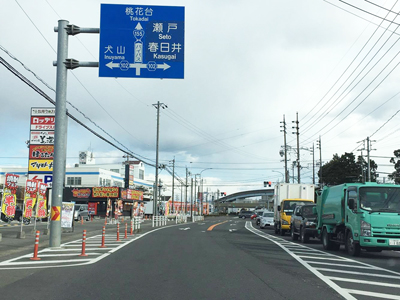 春日井の「市民病院東」の交差点を桃花台方面に直進します。